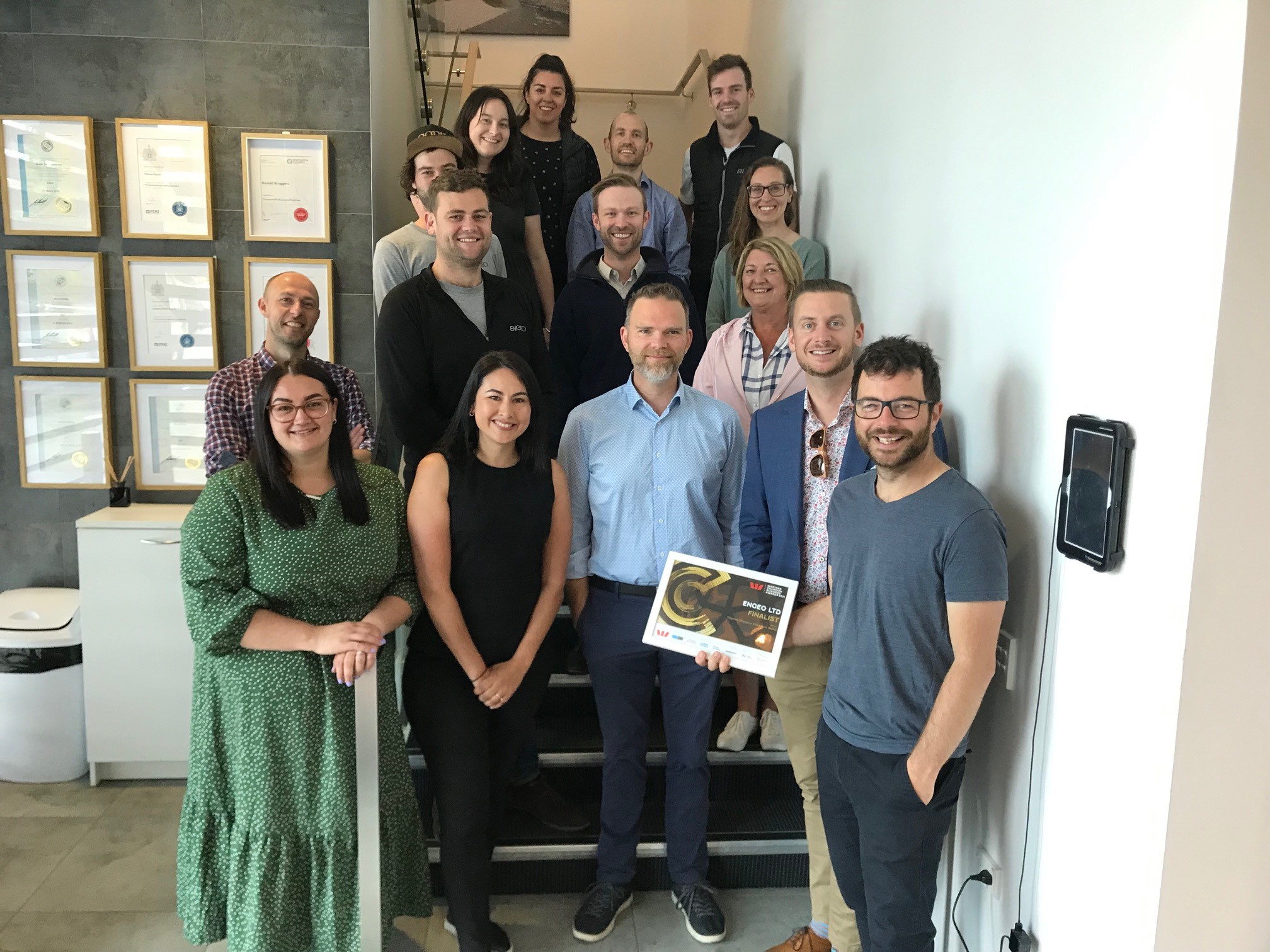 The Westpac Champion Canterbury Business Awards were announced yesterday (October 14). ENGEO was recognised as a finalist for the 2 Degrees Champion Workplace Award.