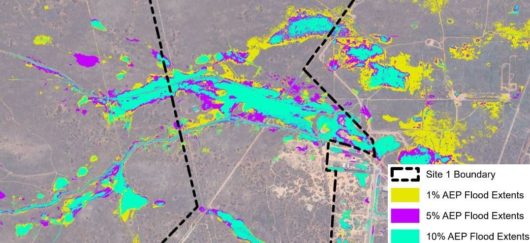 For both projects, ENGEO created rain-on-grid hydraulic models using the HEC-RAS software to characterise each site’s catchment response during 1%, 5%, and 10% annual exceedance probability storm events, incorporating increases in rainfall intensity due to climate change. ENGEO provided estimated flood levels and velocities within the main stream channels adjacent to each site, along with expected peak sheet flow rates that would flow onto the site. Maps showing expected flood extents for each storm event were created to assist with project planning.