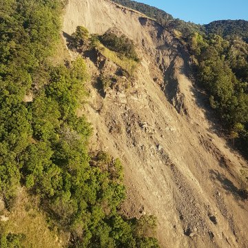 All of this occurred within an earthquake-damaged environment, where widespread displacement and partial movement on the surrounding hillslopes occurred. The landscape was and remains, dynamic, with slope instability likely following even relatively small rainfall events.